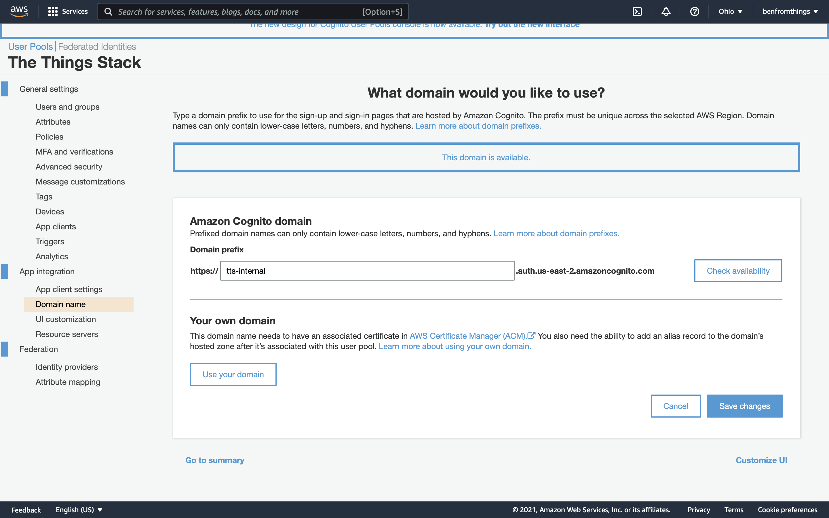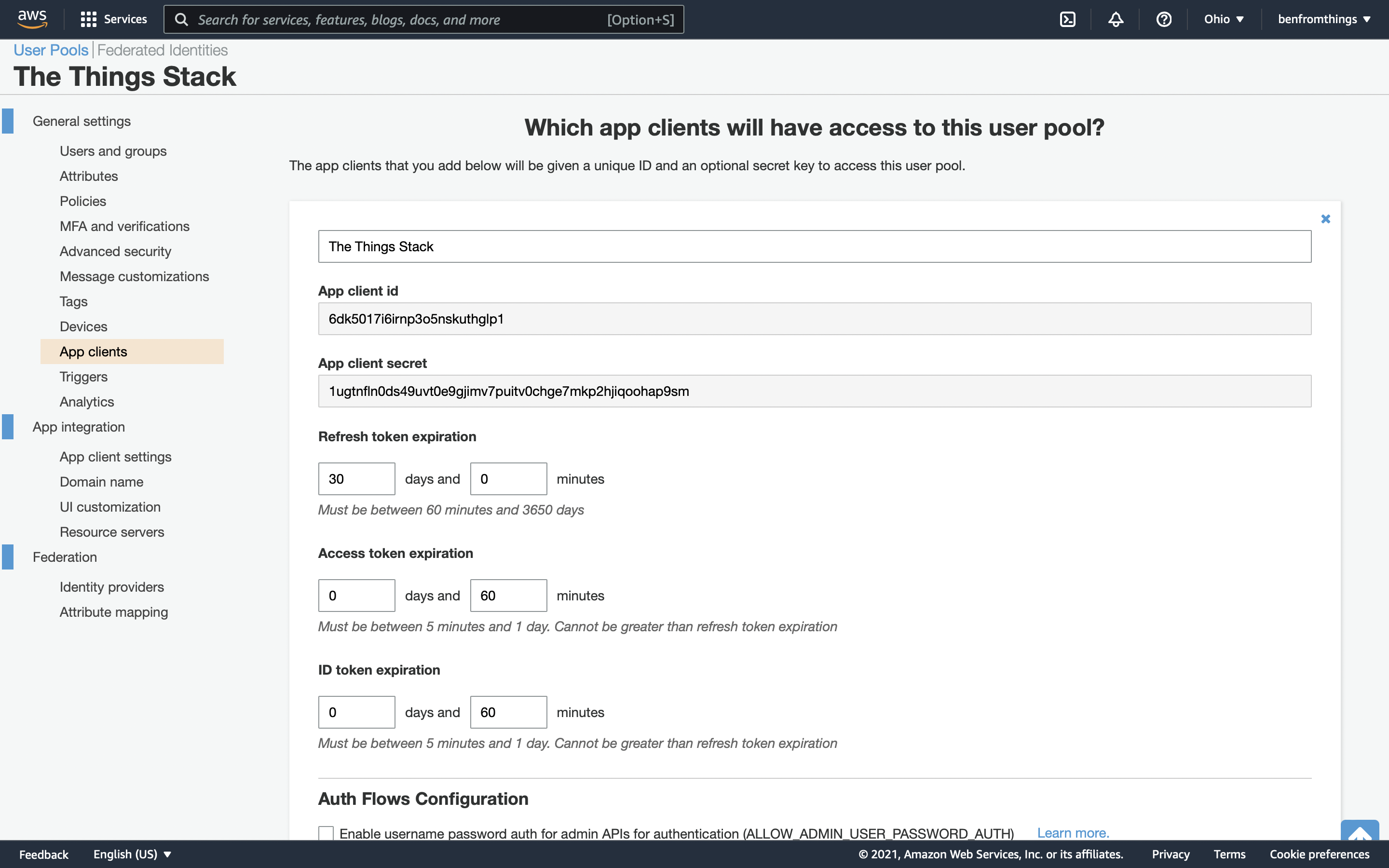 This section contains instructions to configure Amazon Cognito to work with The Things Stack.
